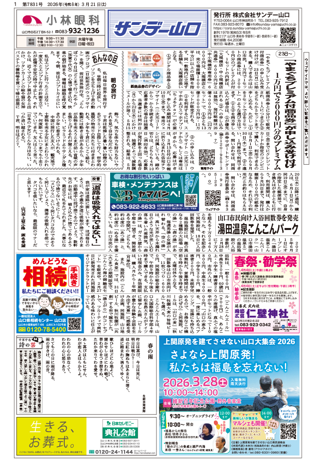サンデー山口(山口版)紙面