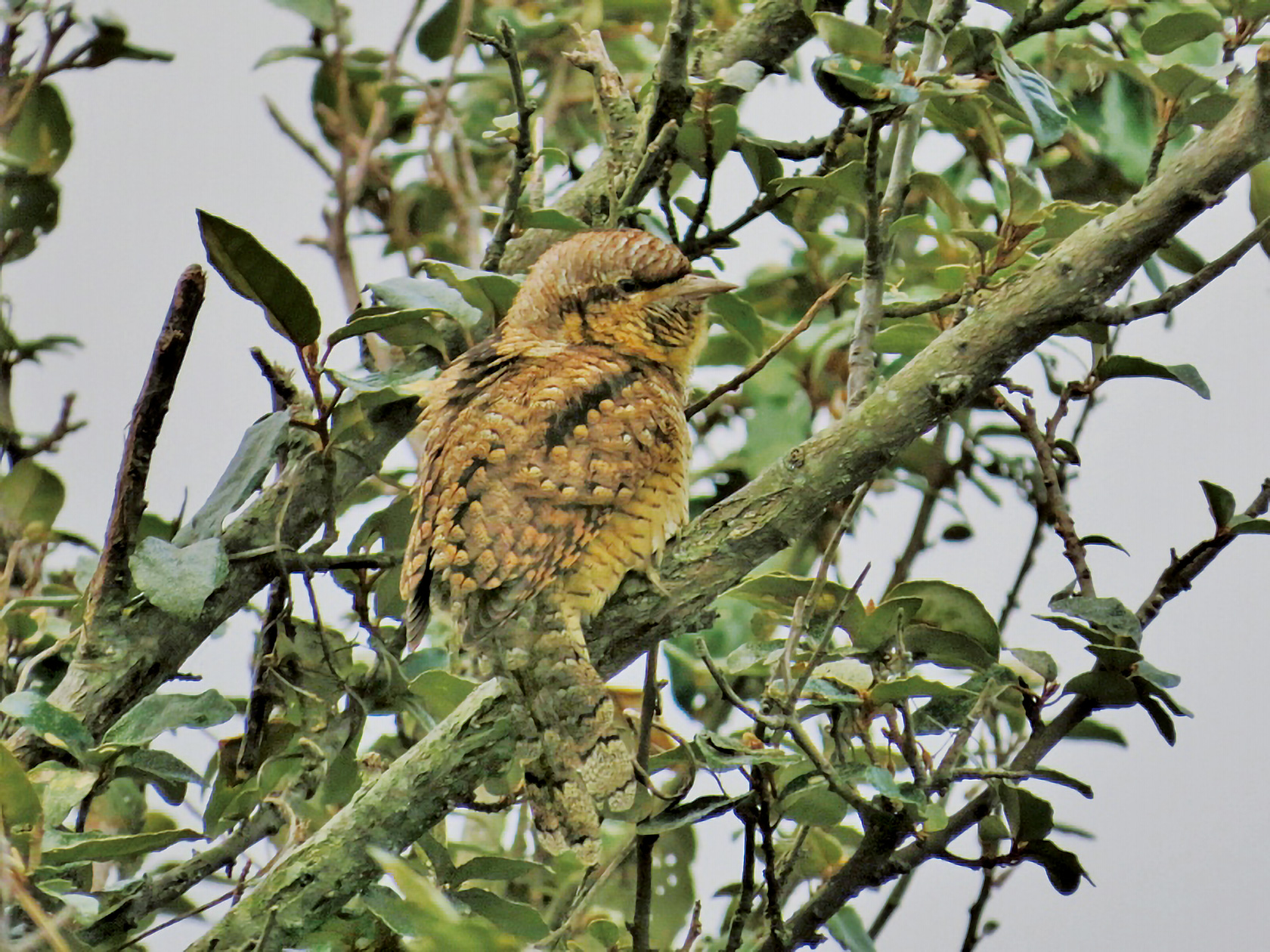 キツツキの仲間ですが木の幹に垂直にとまることはせず、一般の鳥のように横枝にとまります。全体の細かい模様が爬虫類のうろこのようで、長い舌を出し入れしたり、外敵が近づくと首をくねらせて威嚇したりする動作はまるでヘビ。アリを主食とし、地面や樹上で舌を使ってなめとることが名前の由来です。