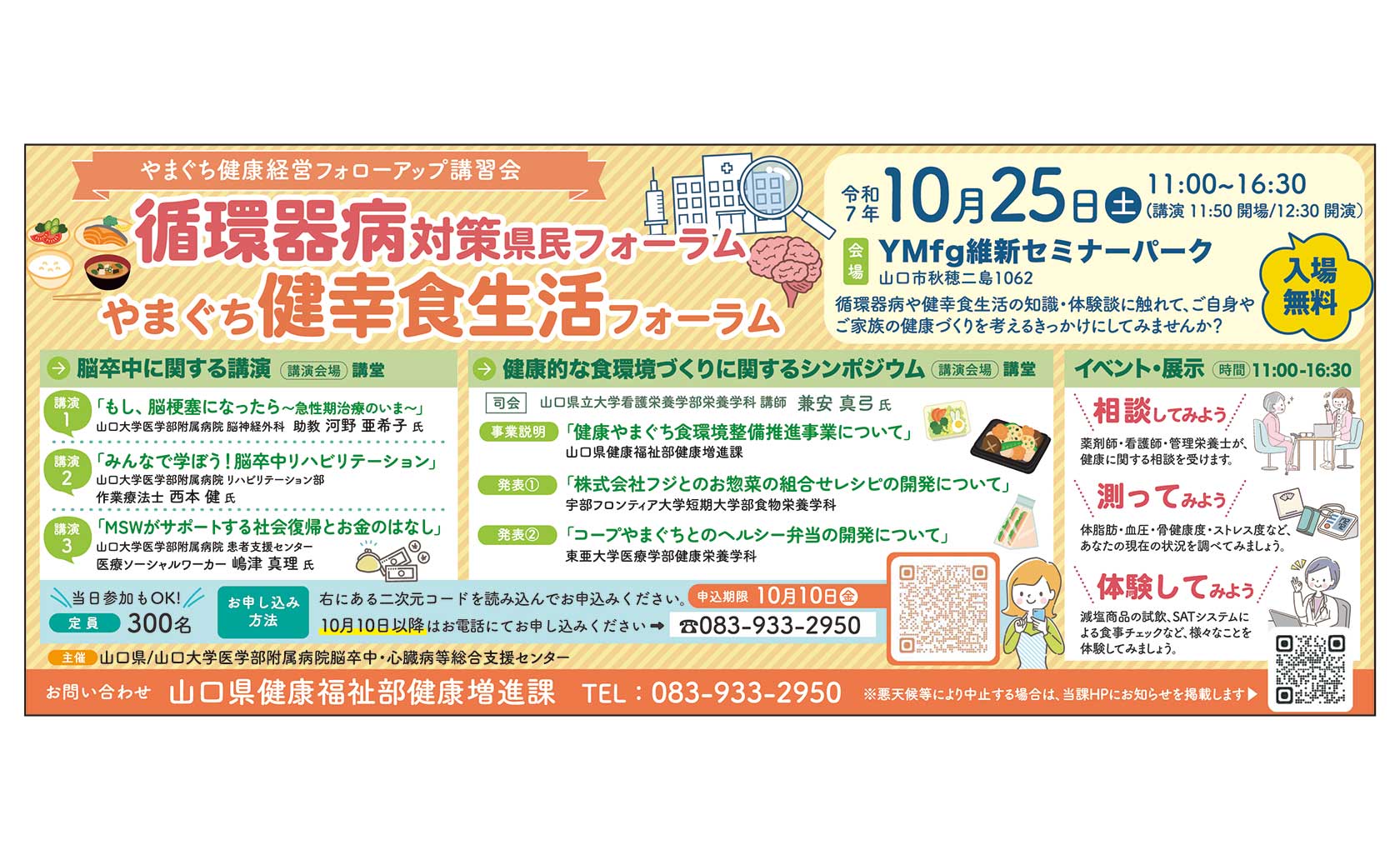 日時:10月25日(土)11:00~16:30 会場:YMfg維新セミナーパーク(山口市秋穂二島1062) 定員:300名