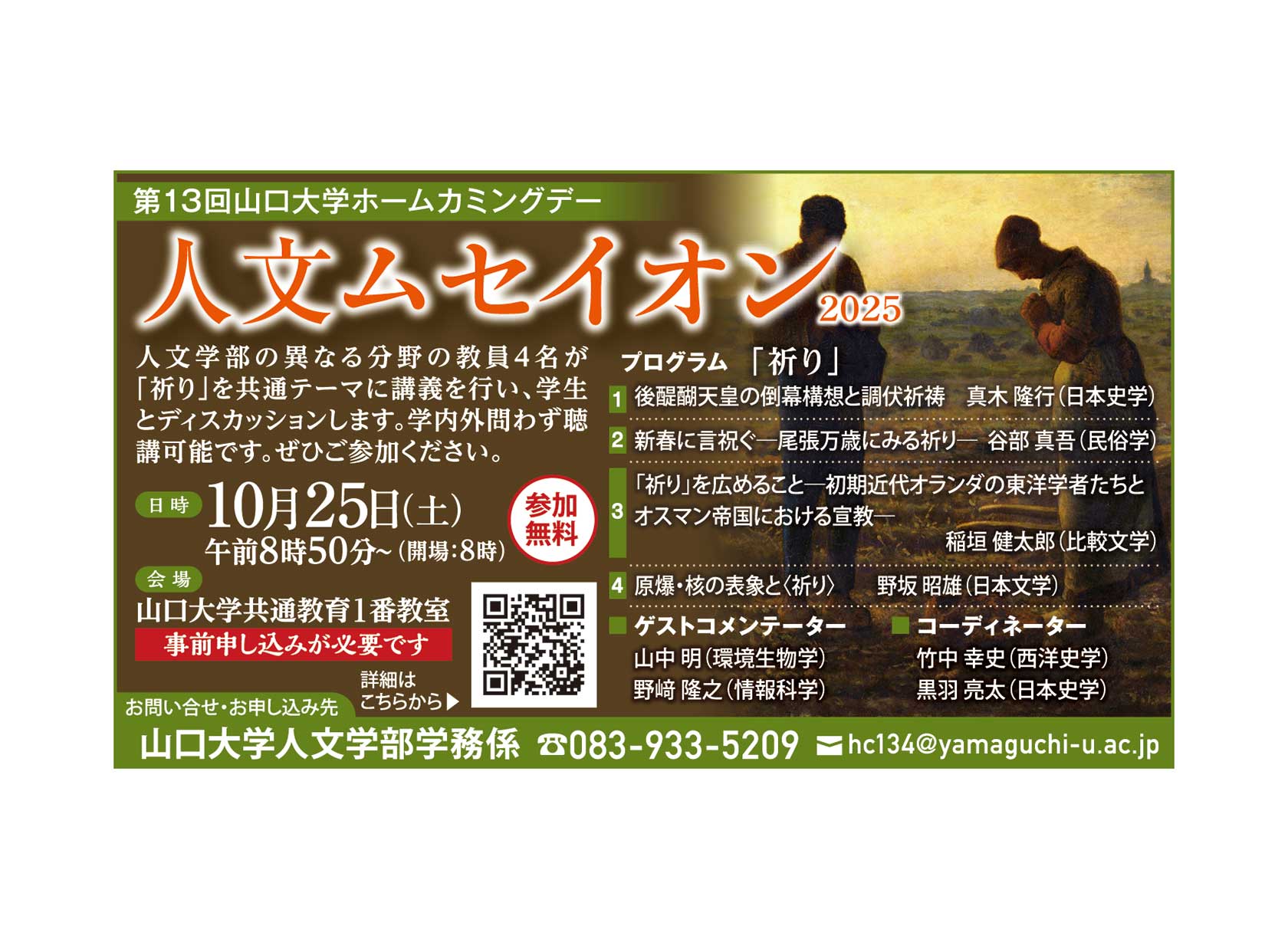 日時:10月25日(土)8:50~(開場8:00) 会場:山口大学共通教育1番教室(山口市吉田1677-1)