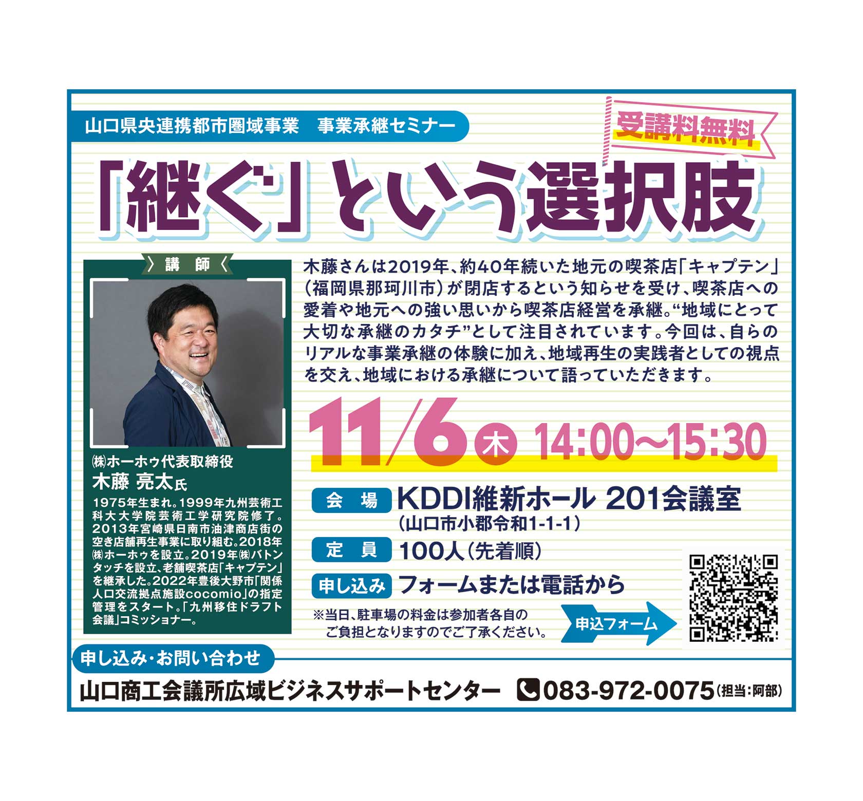 日時:11月6日(木)14:00~15:30 会場:KDDI維新ホール201会議室(山口市小郡令和1-1-1)