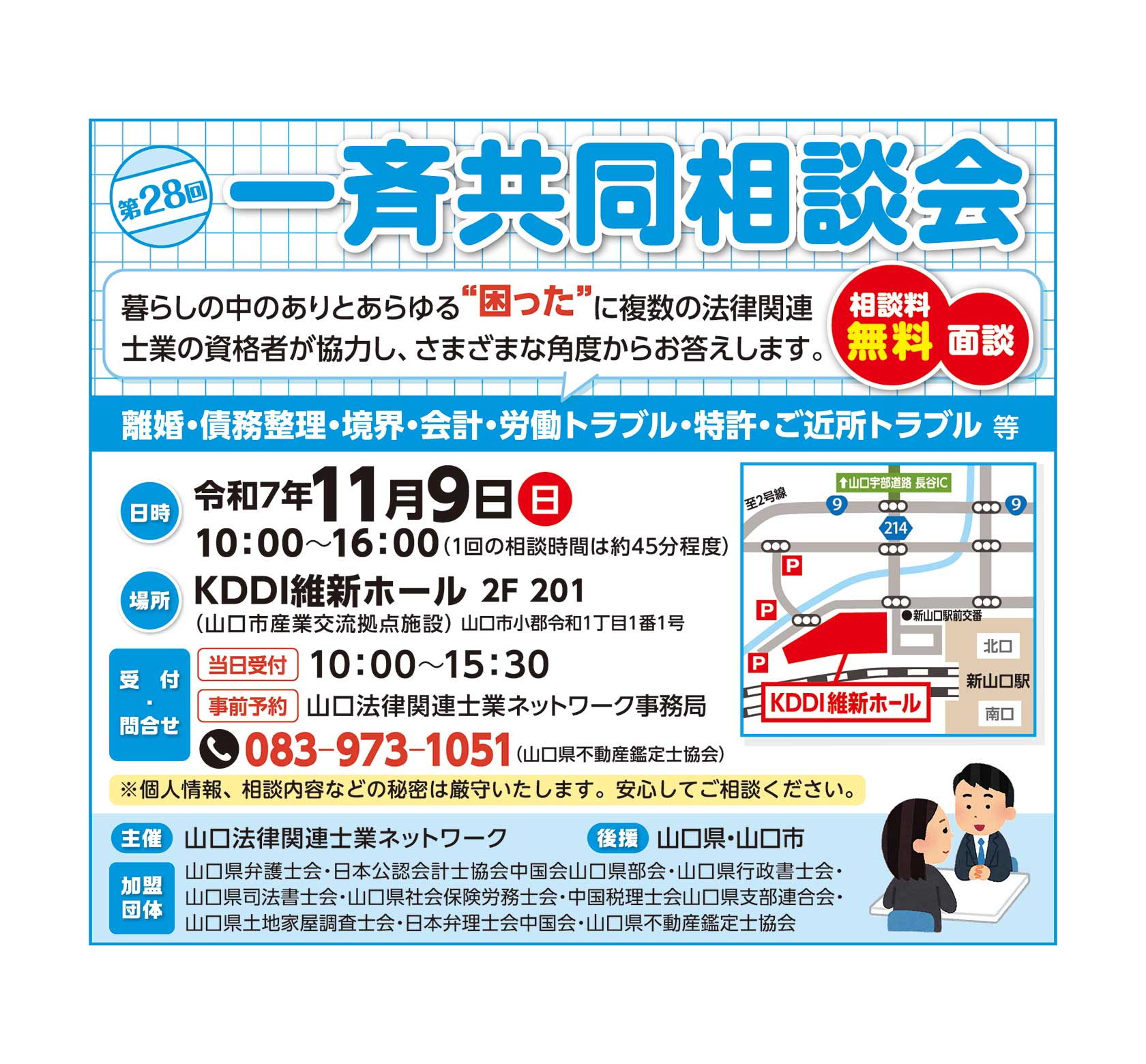 日時:11月9日(日)10:00~16:00 会場:KDDI維新ホール(山口市小郡令和1-1-1) 相談無料