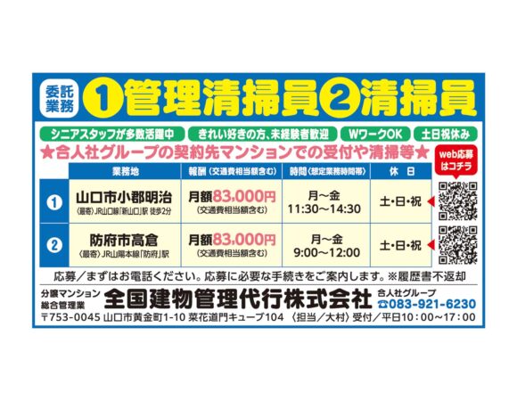 参加費は6000円。郷土料理「あんこ寿司」定食の昼食代や保険料も含まれる。申し込みは、はがきに参加者全員(2人まで)の郵便番号、住所、氏名(ふりがな)、生年月日、電話番号を明記し、〒753-0021 山口市桜畠3-2-1(公財)やまぐち農林振興公社緑化企画室(TEL083-924-5716)へ。10月30日(木)消印有効。定員は23人で、応募者多数の場合は抽選となる。