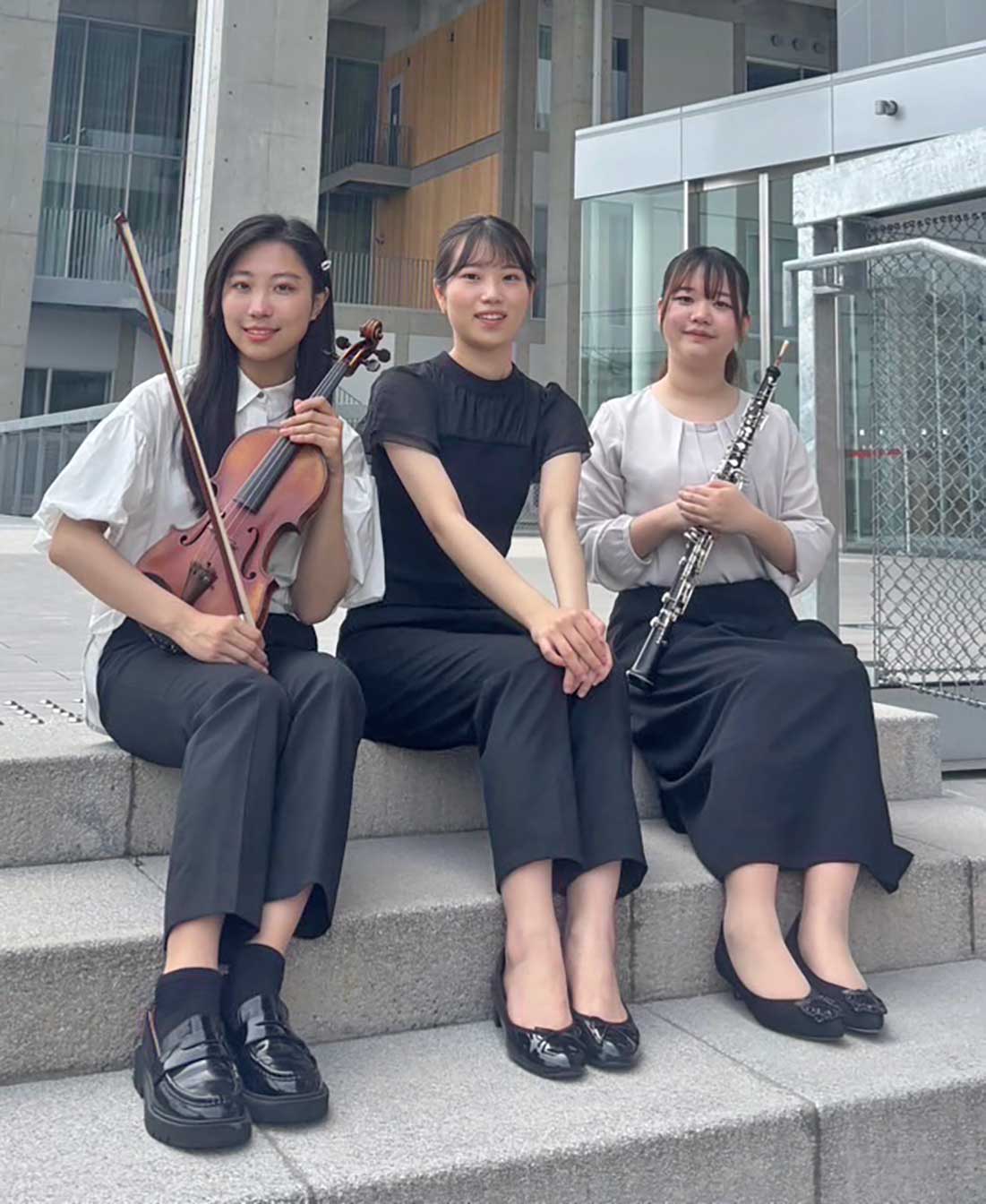 今回は、京都市立芸術大で音楽を学んでいる、土本梨花子さん(バイオリン)、平田和さん(オーボエ)、山本美弦さん(ピアノ)の3人が出演。「オーボエとヴァイオリンのための協奏曲 ハ短調第1楽章」(バッハ)、「愛の挨拶」(エルガー)、「ホール・ニュー・ワールド」(アラン・メンケン)などを演奏する。山口市出身の平田さんは、山口高管弦楽部でオーボエを始めた。そして、彼女と大学で同学年の土本さんと山本さんはともに大阪府出身で、国内外のコンクールでも活躍している。