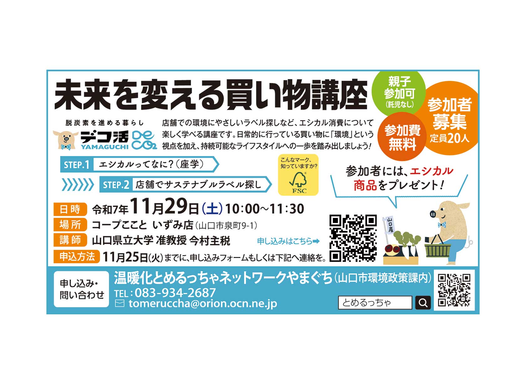 日時:11月29日(土)10:00~11:30 場所:コープここといずみ店(山口市泉町9-1)