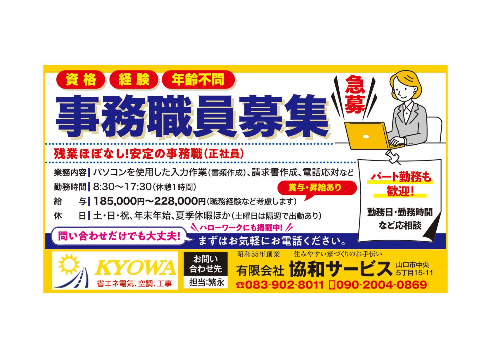 勤務時間:8:30~17:30(休憩1時間) 給与:185,000円~228,000円(職務経験など考慮します) 休日:土・日・祝(土曜は隔週で出勤)、年末年始、夏季休暇ほか