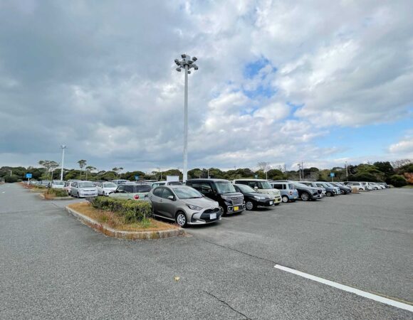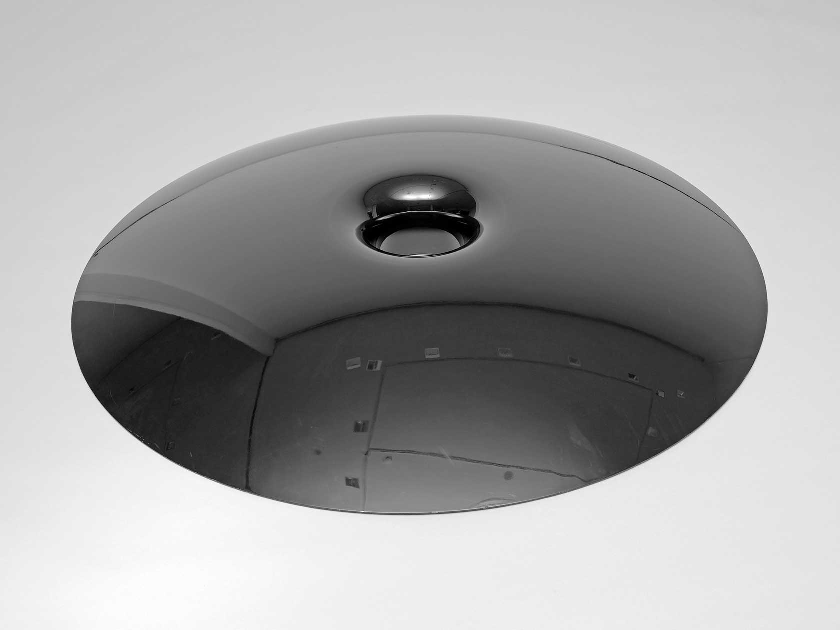 円盤状の黒い物体が床に置かれている。直径126㎝。中心に向かってなだらかに盛り上がった先に、穴がある。
