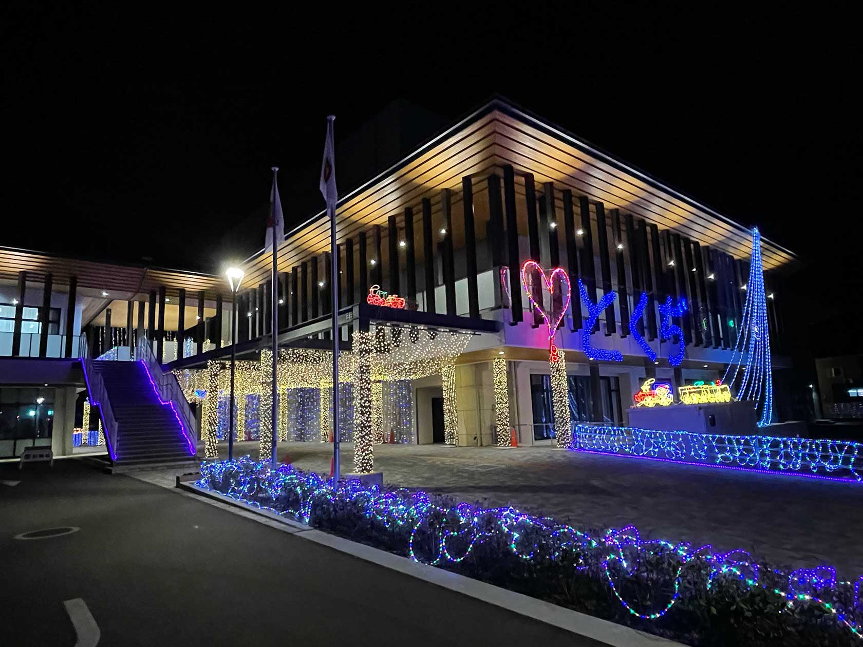 この時季、山口市内各所にお目見えしたイルミネーション「山口の灯り」をご紹介します。今回は、「第7回とくぢ行って美夜(ミナイト)」の徳地総合支所のイルミネーションです。