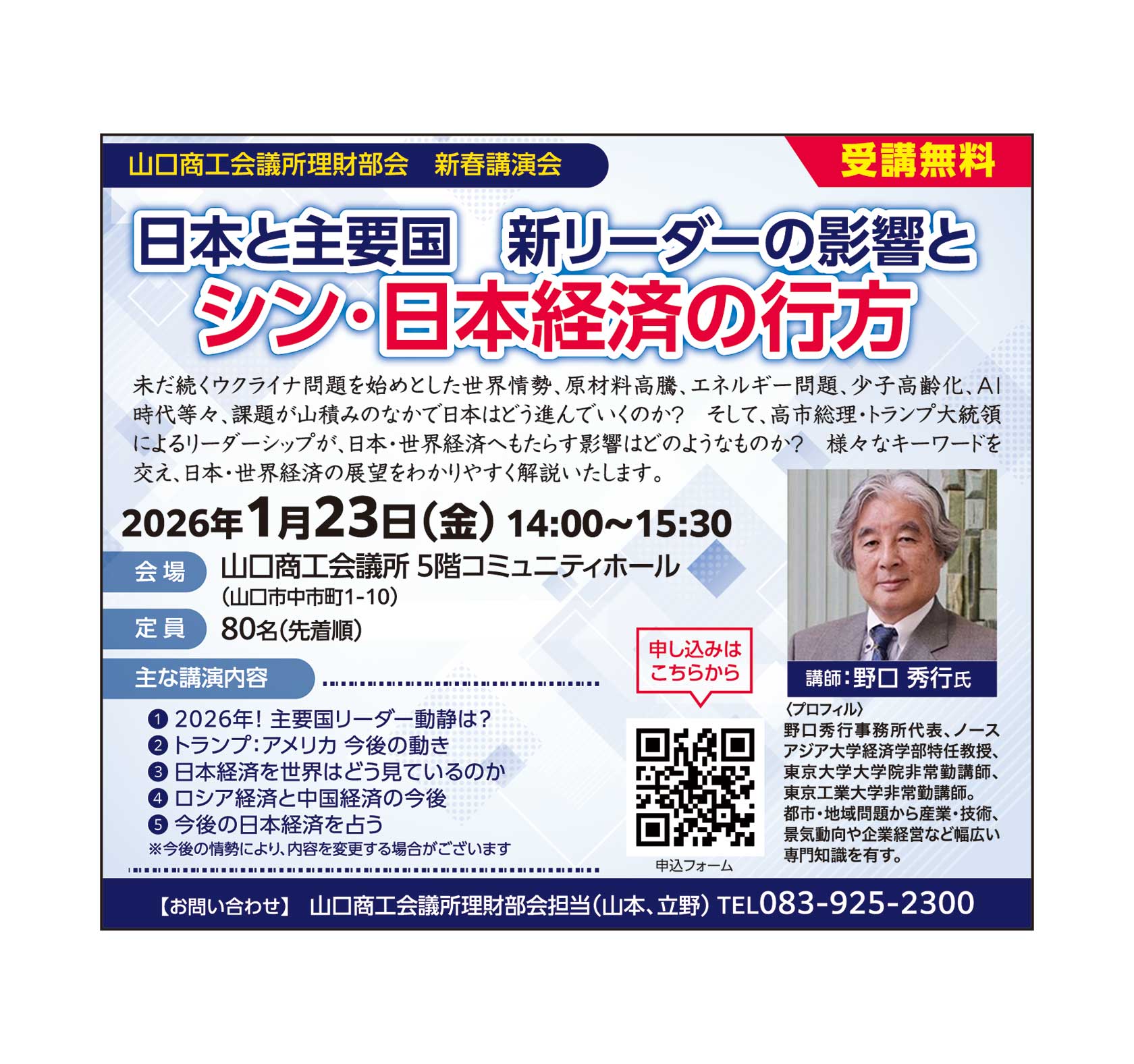 日時:1月23日(金)14:00~15:30 会場:山口商工会議所(山口市中市町1-10)