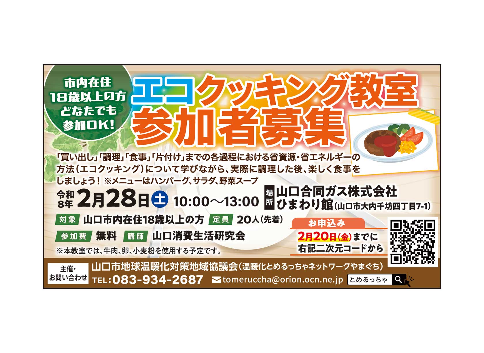 日時:2月28日(土)10:00~13:00 会場:山口合同ガス(株)ひまわり館(山口市大内千坊4-7-1)