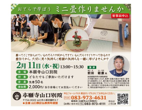 観覧料は、一般100円、小・中学生50円(未就学児無料)。問い合わせは同施設(TEL083-934-3312)へ。火曜休館。