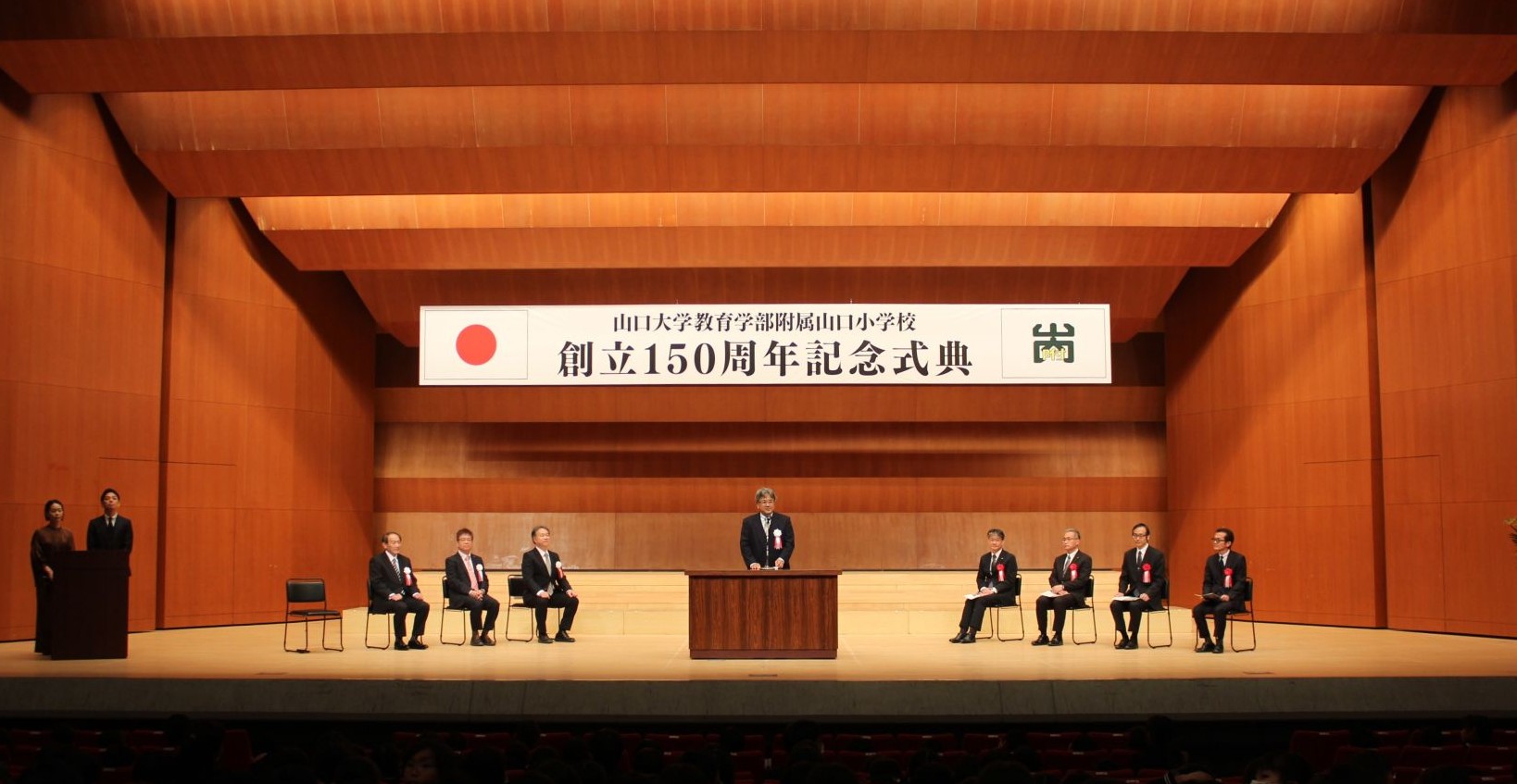 昨年11月15日午後、「山口大学教育学部附属山口小学校創立150周年記念式典」が山口市民会館大ホールで開かれ、同校の児童、保護者、教職員、同窓生ら約950人が参加した。