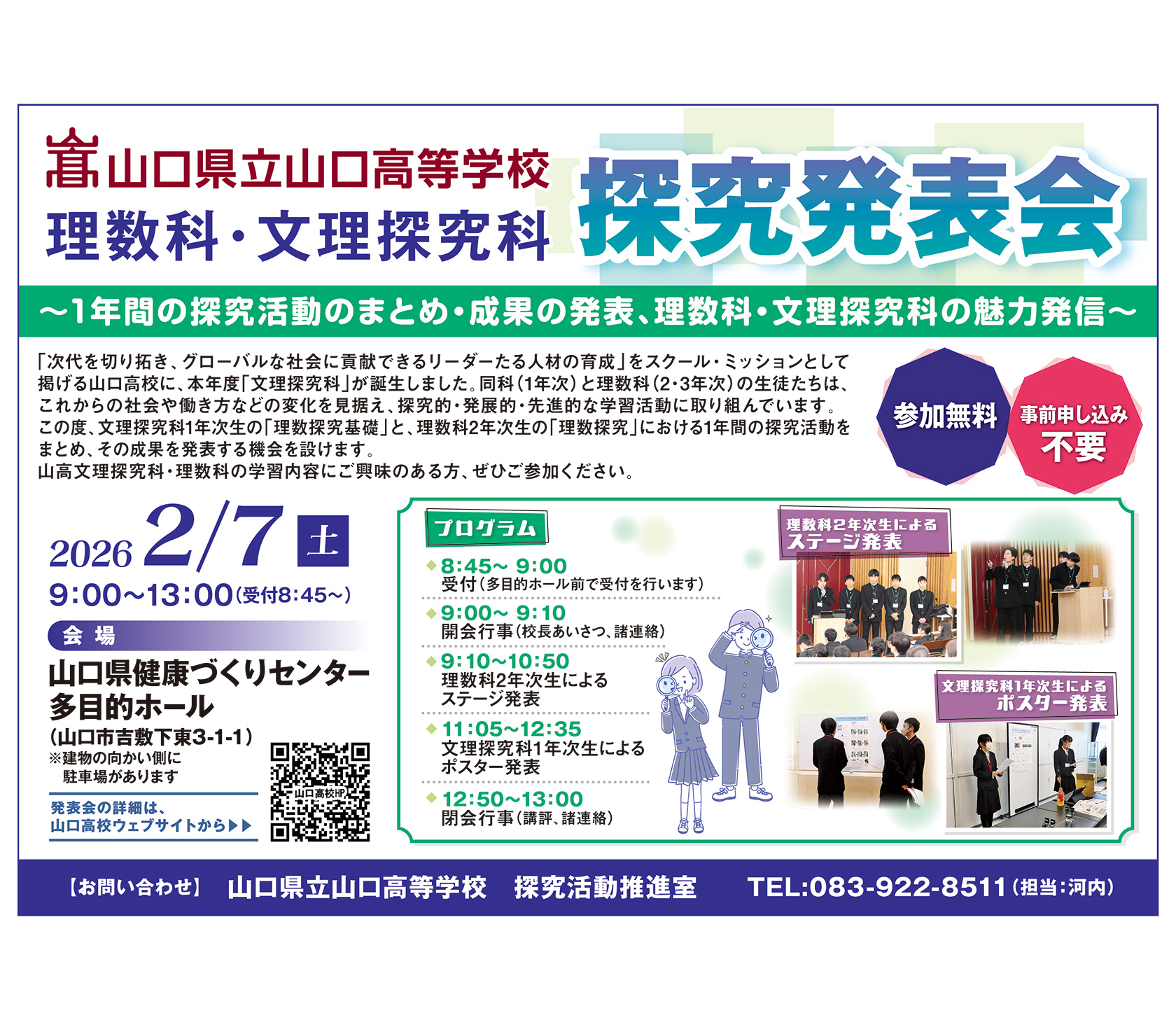 1年間の探究活動のまとめ・成果の発表、理数科・文理探究科の魅力発信