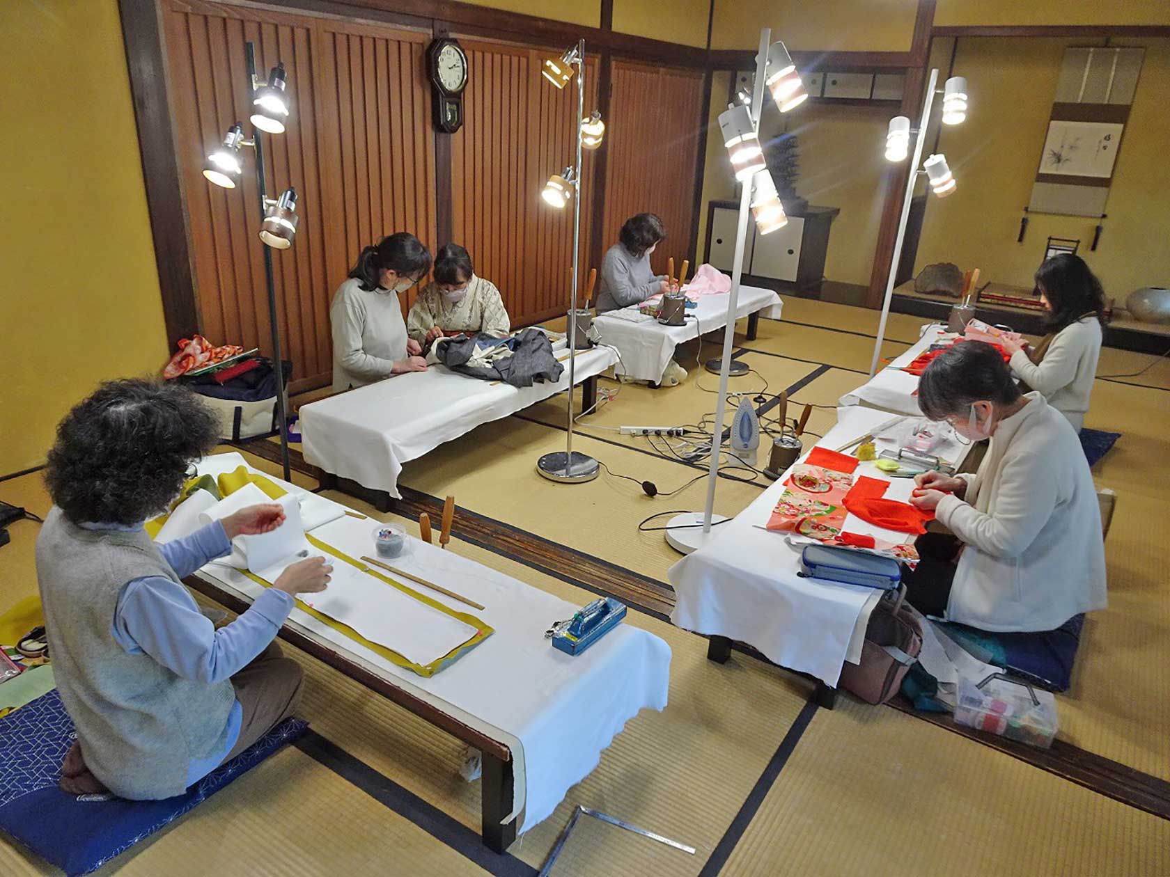 「和裁教室」(和裁の基本技法を習得し、浴衣を縫う)・丸崎真弓さん・月曜午後1時~4時・4月~6月(10回)・無料だが生地は受講者が用意・10人
