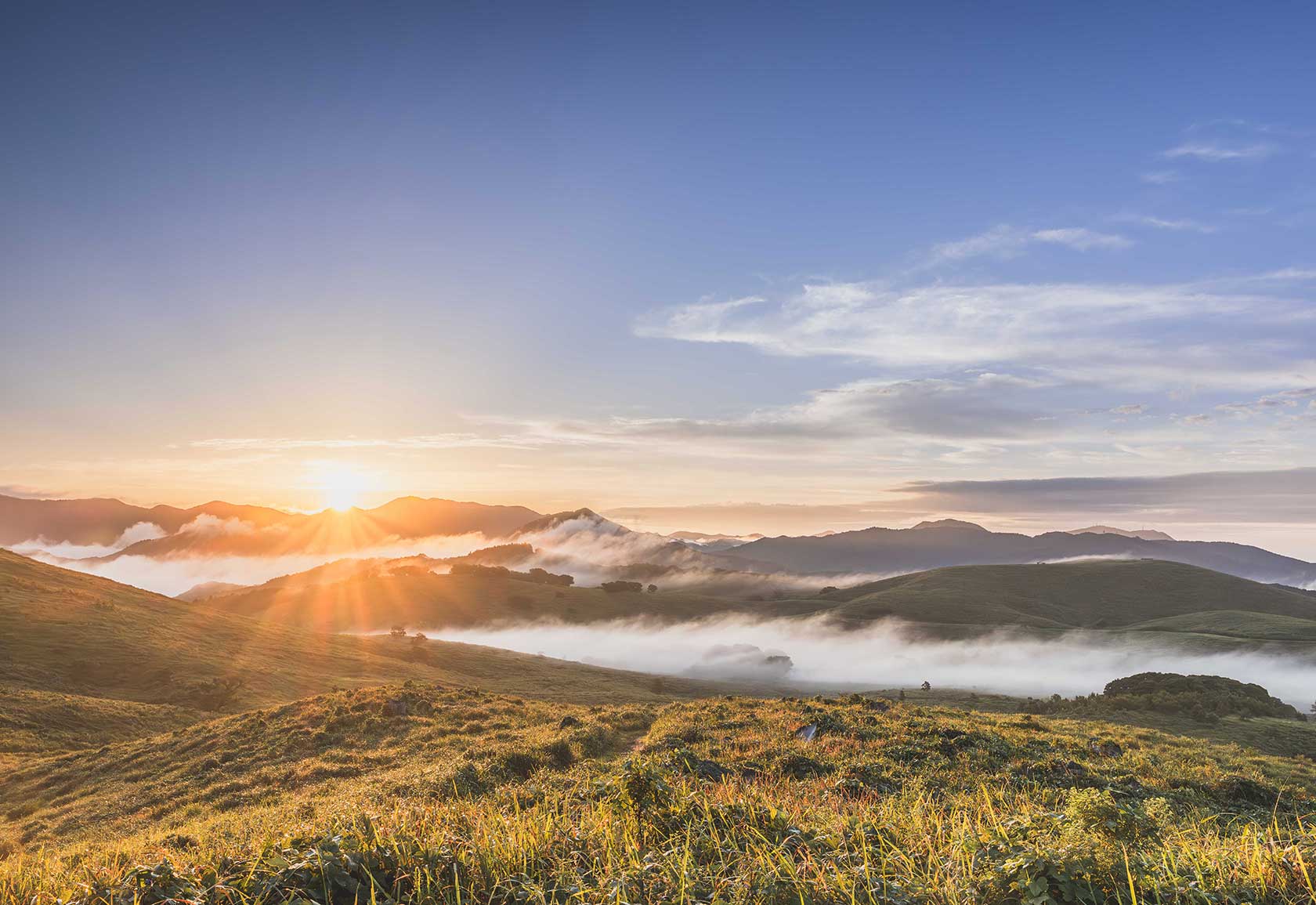 秋になると朝霧が現れてきます。初秋のある日、朝霧が日の出と共に流れてきました。秋吉台劇場の始まりです。