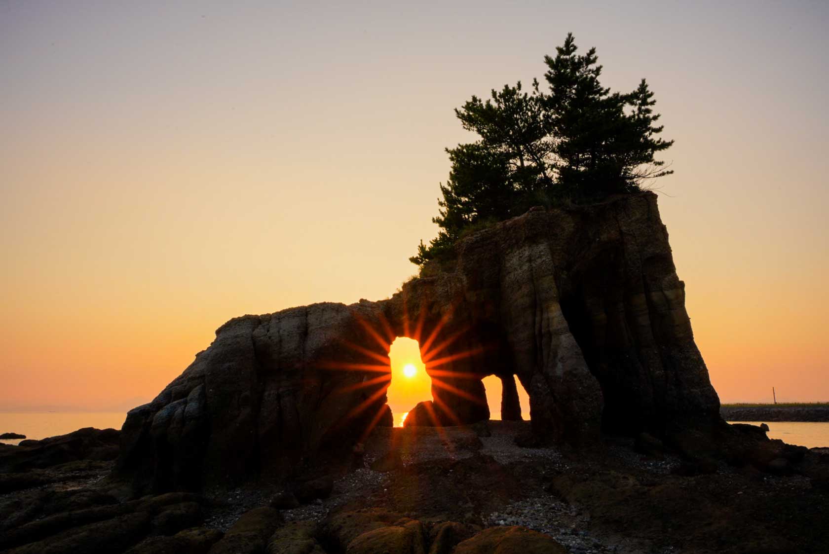 竜王山のくぐり岩を通して見た夕日。自然がつくり出す"光の門"に、2026年の幕開けへの祈りを重ねました。