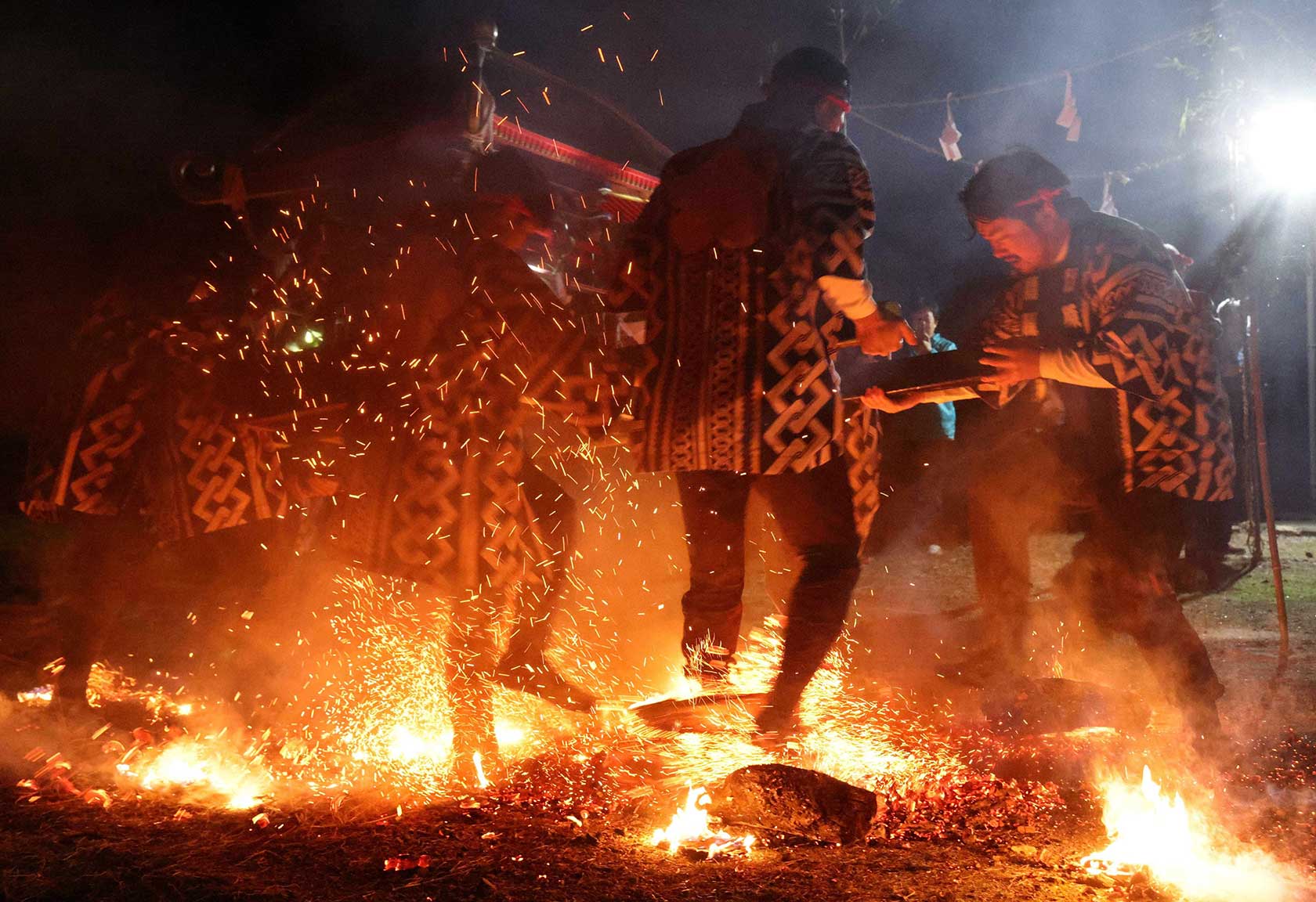 津和野町にある鷲原八幡宮の秋季大祭の暴れ神輿。激しい炎の中、神輿が暴れ、担ぎ手熱っちっち。我慢強い。